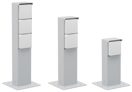 Изящные уличные столбики доступные в сером, черном или белом цвете, в которые можно установить любые устройства серии.